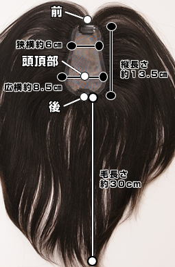 横方向(一番細い所)約6センチ・約8.5センチ程度(一番広いつむじ付近)